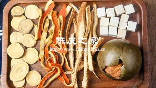 1、理气健脾:陈皮中含有大量纤维素和多种挥发油,能促进消化液的分泌。罗汉果富含葡萄糖、果糖等。这两种物质与水结合在一起,比较适合腹胀。