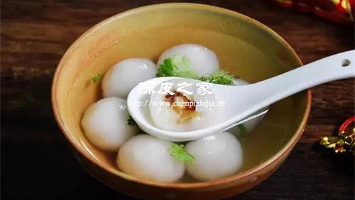 无论南方还是北方,在超市或者门面店里售卖的汤圆大部分都是甜口的,但是五邑风味的汤圆确实独特有好吃的咸口汤圆。里甜外咸、汤底咸鲜、浓香十足。另外,因为五邑咸汤圆的内陷还是黄糖的,吃起来难免还是会有一些腻腻的感觉,所以加入了清爽解腻的新会陈皮丝,让整到菜品达到一个甜而不腻、浓香十足的新境界。