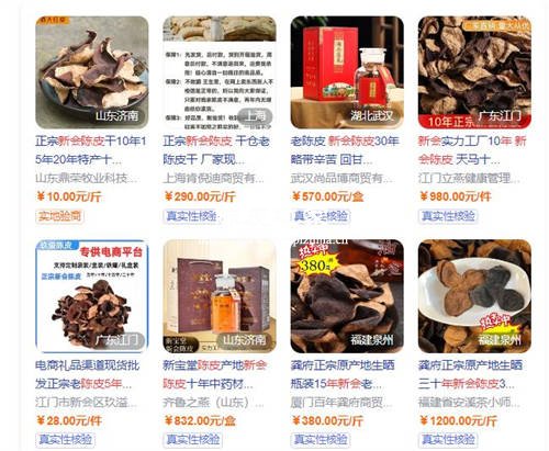 上图中就是网上陈皮店铺公开的5年新会陈皮价格表??梢钥吹剑?年陈皮,价格相差是非常大的。