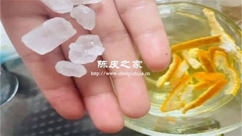 (2)陈皮用清水洗净,温水泡软后撕成小块,和雪梨、冰糖一起放入锅中,加水没过雪梨,喜欢喝汤水可以多放点水,要是密封性很好的砂锅或炖盅需要少放点水。