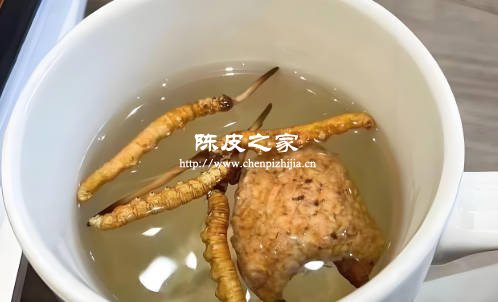 陈皮气味芳香,能醒脾开胃,理气健脾,促进脾胃运化。冬虫夏草在补肾的同时,有助于脾的运化,因为肾为先天之本,脾为后天之本,二者相互滋养。所以两者泡水对脾胃功能有调节作用,可增强消化吸收能力,改善食欲。