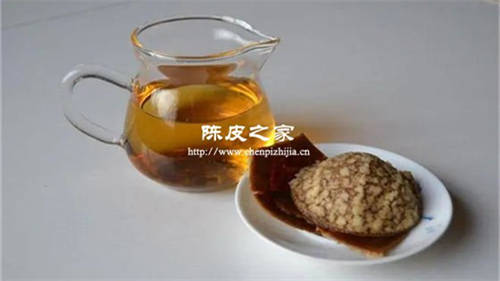 (2)把陈皮随冷水下壶,煮开后再改文火煮3~5分钟,然后将陈皮水倒入品茗杯中品饮。