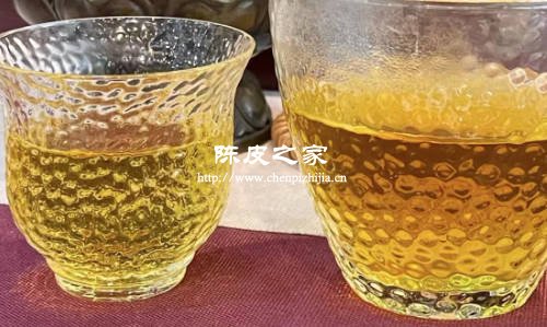 五年到十年左右的陈皮:五年到十年左右的陈皮这时候年份都已经是属于中等了,这时候泡水泡出来的颜色会相对来说更加浓郁一些,是金黄色或者是鹅黄色的那种颜色。