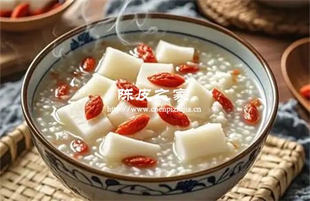 3.功效:山药、莲子性味均甘,具有补脾胃、益气力的功效。陈皮和山药搭配养阴血的红枣、枸杞子,有利于消化吸收。此粥可补益心肾、安神益智,缓解痰多咳嗽,促进食欲,还能缓解身体乏困、和胃安眠。