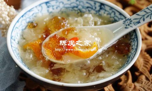 其他功效:银耳具有美容瘦身,补肾强精,保护肝脏的功效,陈皮则是是具有理气健脾,燥湿化痰,降血脂,抗衰老等功效,把陈皮和银耳一起煮汤喝,能够相互扶助,增强两者的功效,能够增强人体体抗力的同时还能有这美容养颜等功效。