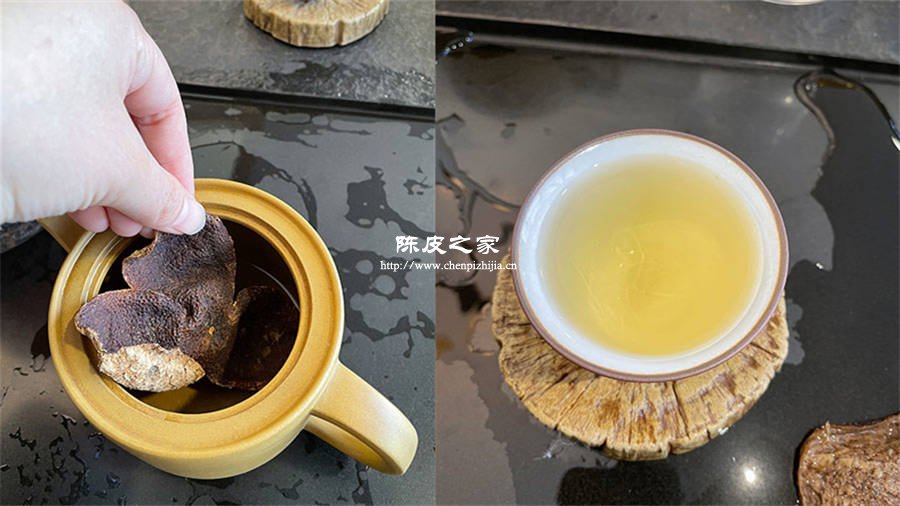 最后,我们再来看看小红家陈皮的实物,从其实物自然可判断究竟是不是正宗新会陈皮。了解过新会陈皮的都知道,新会陈皮的基本特点:三瓣相连、有柑香味、年份越长颜色越重且有层次感、泡水颜色金黄色且随年份逐渐变深……